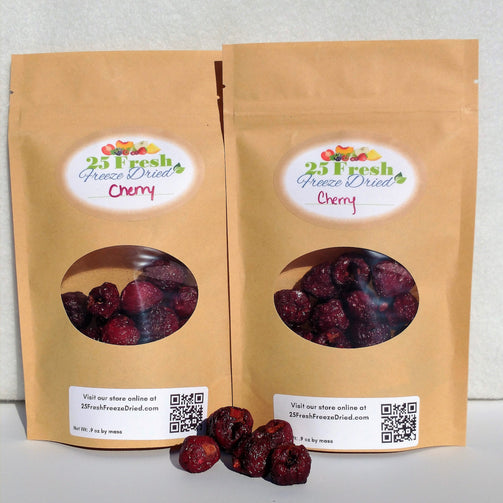 PA picked Bing cherries, pitted, and dried for you to enjoy. .9oz bag.