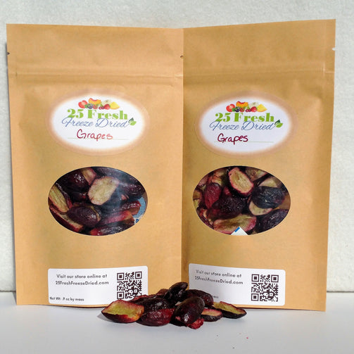 Red or green grapes cut in half, crispy and sweet as candy. .9oz bag.