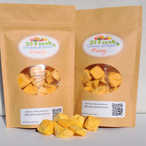 Unsweetened mango chunks dried to crunchy perfection. .8oz bag.