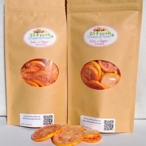 Roma tomatoes sliced and kept simple with a touch of salt and pepper to flavor your snack just a bit. .4oz bag.